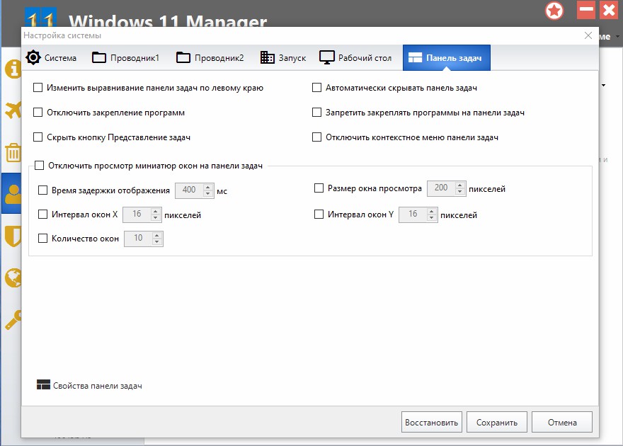 не требуется (инсталлятор уже пролечен)Описание: Windows 11 Manager - это универсальная утилита специально для Microsoft Windows 11, она включает в себя более сорока различных утилит для оптимизации, настройки, очистки, ускорения и восстановления вашей Windows 11, помогает ускорить работу вашей системы, устранить системные ошибки, повысьте стабильность и безопасность, персонализируйте свою копию Windows 11 и оправдайте все ваши ожидания.