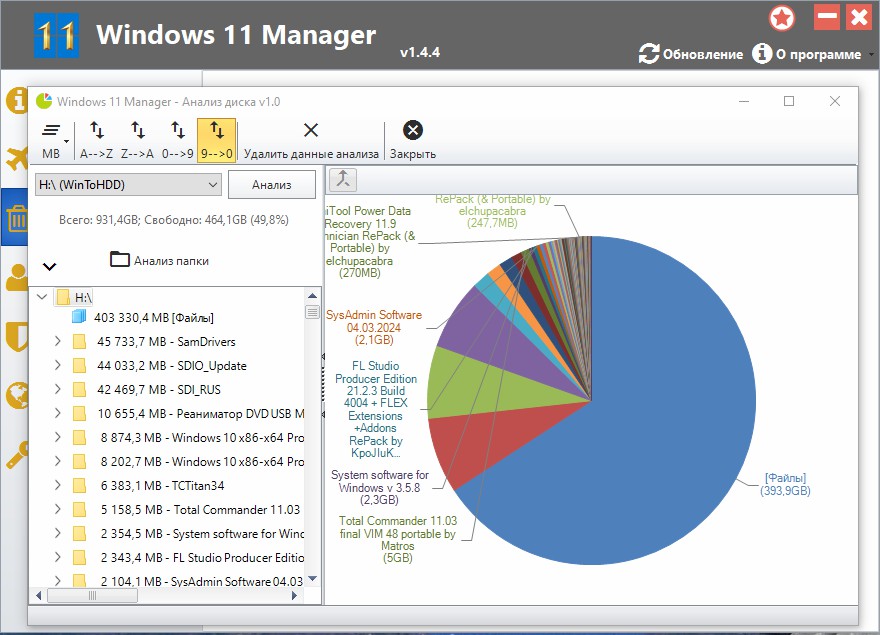 Анализ дисков и просмотр занимаемого места файлами, папками, программами; Очистка папки WinSxS, для оптимизации магазина; Полное удаление программ, включая остаточные файлы и записи реестра; Анализ рабочего стола на наличие неиспользуемых ярлыков, файлов и папок; Поиск и удаление ненужных файлов, с целью освобождения места; Поиск и удаление дублирующихся файлов, с целью освобождения места на дисках; Сканирование реестра на наличие неверных записей; Дефрагментация реестра, для увеличения скорости доступа к нему.