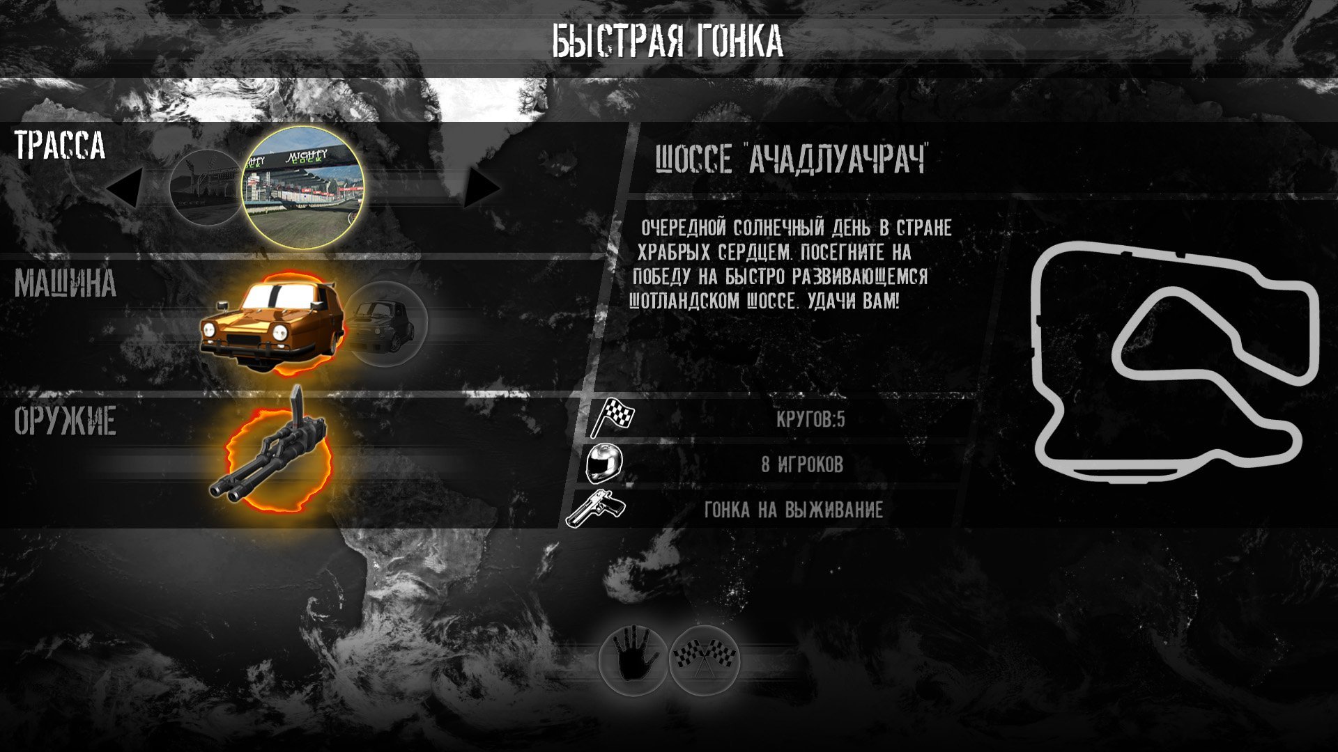 Описание: Экстримально быстрые гонки, яростные и вооруженные до зубов соперники. Это быстро развивающийся захватывающая гоночная боевая игра,в которой много различных транспортных средств, оружия,которые можно модернизировать,получать на трассе бонусы, а также различные меняющиеся трассы. Игроки начинают со слабых транспортных средств и постепенно повышают их, зарабатывая деньги в серии сложных трас.Категории, трассы и транспортных средства будут разблокированы, как игрок прогрессирует на протяжении всей игры. Наряду с развитием его вождение и боевыми навыками, игрок должен вложить свои кровно заработанные деньги с умом, чтобы прийти к славе.