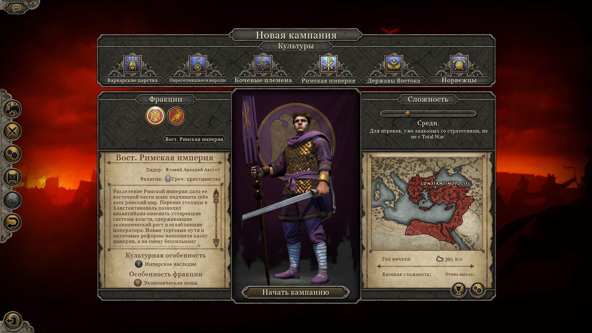 Легендарные стартовые позиции При игре за Западную Римскую империю вы получаете в распоряжение территорию обширную, но ослабленную внутренними политическими противоречиями и окруженную врагами. Ваше правление вскоре превратится в схватку за жизнь.