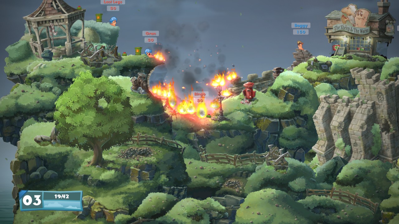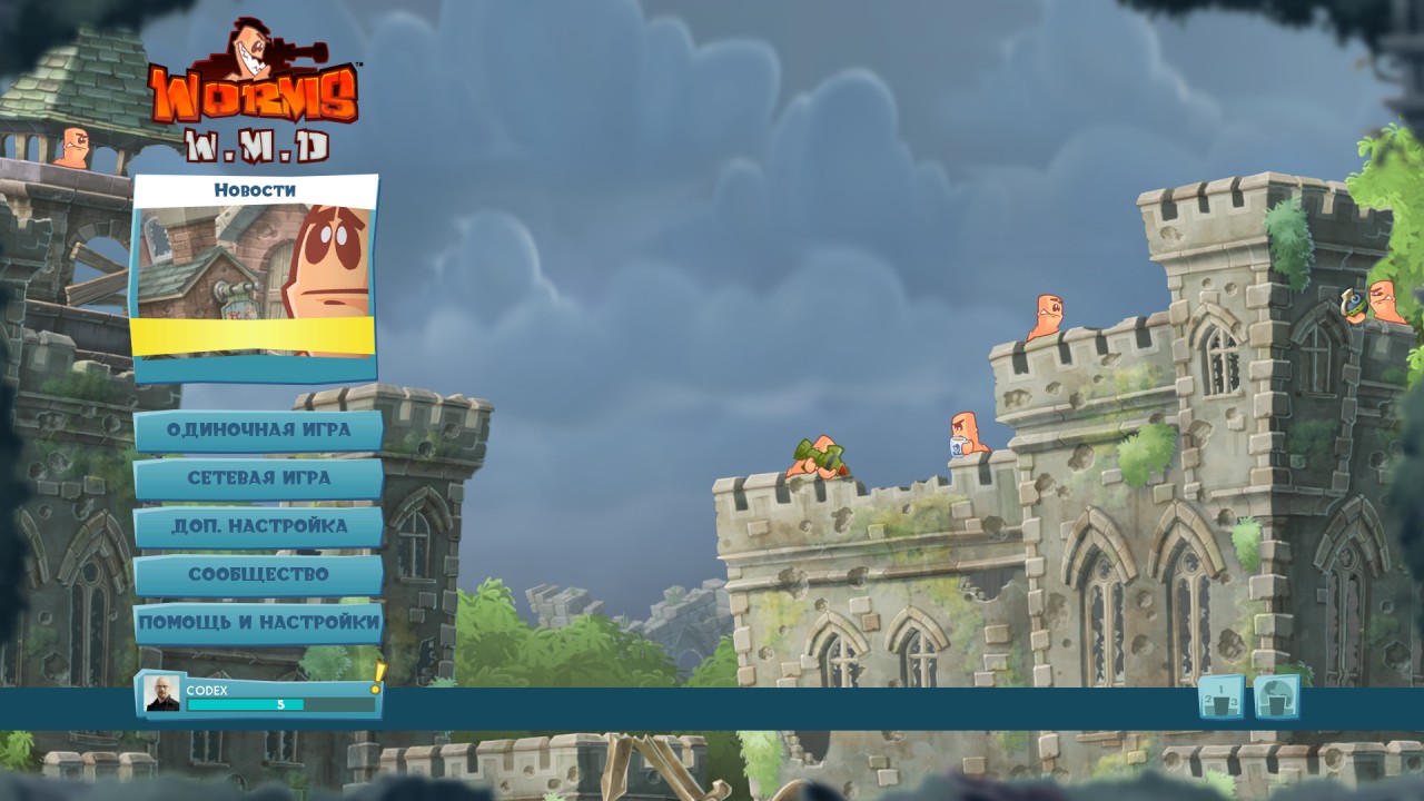 Описание: Worms W.M.D - часть серии пошаговых стратегий про червяков. Она сделана в 2D. Главным геймплейным нововведением Worms W.M.D является возможность использовать средства передвижения (вертолеты, танки) и даже здания. Имеются синглплеерные режимы: тренировка, кампания и испытания. Многопользовательская составляющая Worms W.M.D поддерживает до 6 человек, у каждого может быть до 8 червяков.