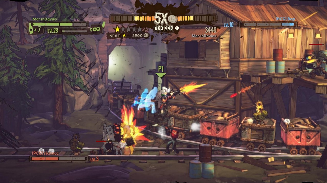 Описание: Игра Shoot Many Robots понравится любителям динамичных аркад, и любителям пострелять в роботов. При этом, как можно сделать вывод из названия - стрелять придётся в кучу роботов. Мне игра напомнила популярный Shank - в таком же рисованном аркадном стиле. Графика выполнена по технологии пиксель-маппинга, создается впечатление, что играешь в комикс. Смотрится, как для аркады, очень масштабно и здорово. Огромное количество роботов, в том чиле и огромных роботов, которые как правило что-то там себе химичат на заднем плане, а потом вдруг вырываются вперед и вам предстоит с ними сражаться. Игра Shoot Many Robots похвастается так же просто огромным арсеналом различных видов оружия. От пистолетов, до базук. Так же есть и рукопашный режим, но на роботов голыми руками особо не попеняешь.