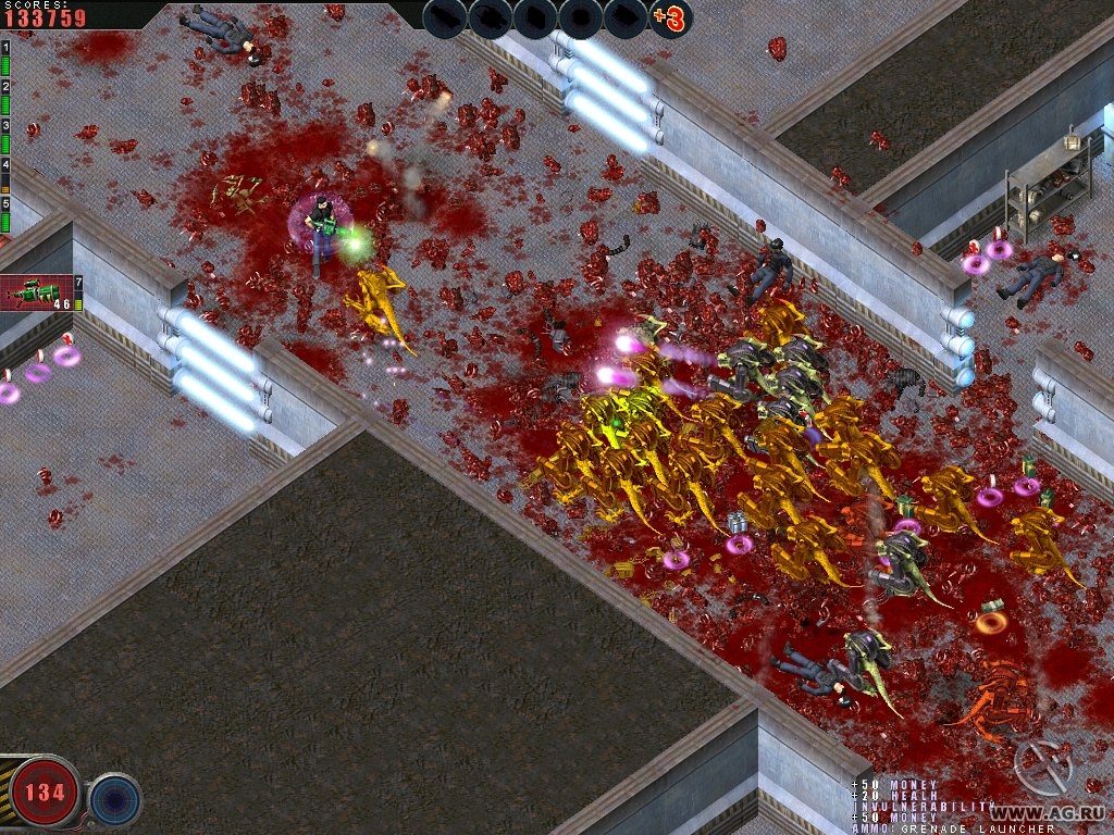 Особенности игры: • 2 режима игры: Компания и Бойня (убей их всех!); • 10 миссий безостановочной войны со злобными пришельцами; • 9 видов оружия - от пистолетов и дробовика до стационарного карабельного пулемёта; • 2 героя с уникальнами наборами характеристик; • возможность изменять характеристики персонажей используя высокотехнологические импланты; • действия героя не ограничиваются истребелнием пришельцев! Взрывайте стены, уничтожайте ящики, бочки и коробки в поисках нового оружия и секретных проходов;