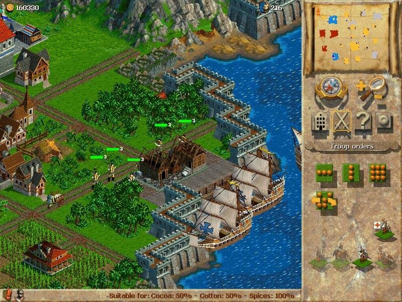 Описание: Anno 1602: Creation of a New World – экономическая стратегия в реальном времени, действия которой происходят в семнадцатом веке. Игровой процесс построен на развитии колонии и управлении ресурсными запасами. Действия происходят на нескольких небольших островах. В Anno 1602 вы будете много времени заниматься строительством, торговлей и дипломатией, однако может придти время и для боевых действий. Правда этот проект больший упор делает на экономическую составляющую, так что бои реализованы очень плохо и реальная нужда в них появляется очень редко.