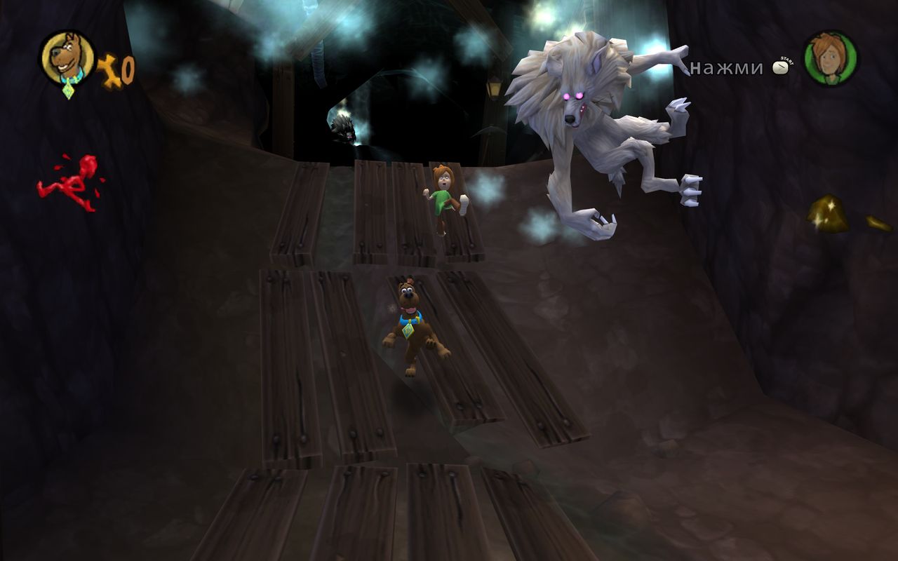 Скуби-Ду 2. Монстры на свободеЭто радостная детская аркада по мотивам нового мультипликационного фильма о похождениях собаки Скуби-Ду. Игрокам предстоит помочь команде Mystery Inc. разыскать собрание волшебных масок, которую собрали наши герои в предыдущей части игры. Эту коллекцию украла из музея одна из магических масок, которая умудрилась ожить, обратиться в птеродактиля, после чего скрылась, прихватив все оставшиеся артефакты и маски... Затем злобные привидения сорвали торжественное открытие музея и начали устраивать беспорядки в городе. Наступило время вступить в дело нашим друзьям. Вам придётся помочь Скуби, Шагги, Фреду и Вельме в их новом поединке с таинственными силами зла, которые опять призвали на землю своих кровожадных слуг.