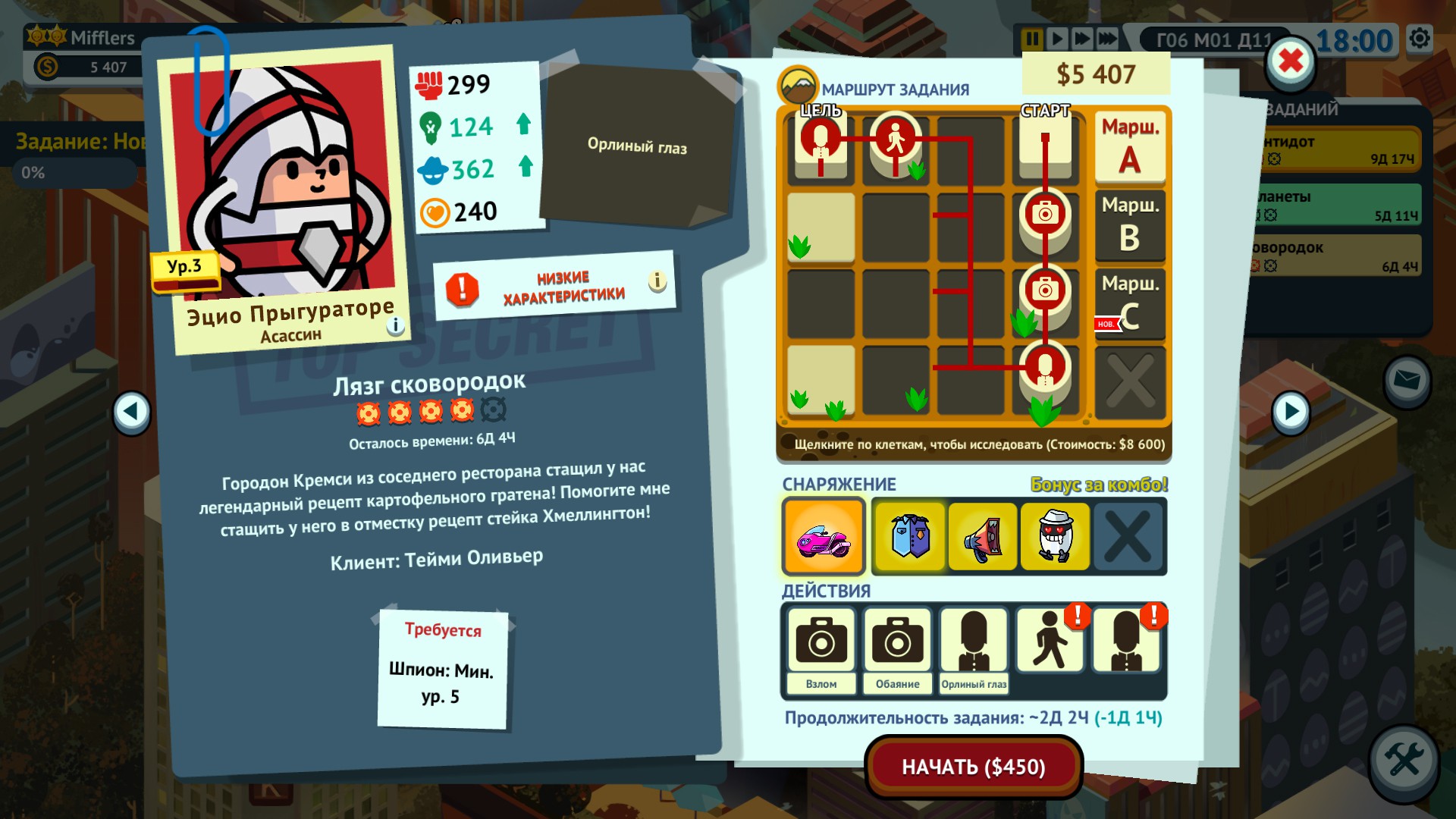 Особенности: Управляйте лучшими в мире картофелинами-шпионами и тренируйте их. Познакомьтесь с легендарными секретными агентами картофельной поп-культуры. Создавайте новых генетически модифицированных картофельных шпионов с помощью генного сплайсинга. Тщательно планируйте секретные миссии и похищения. Модифицируйте, усиливайте и улучшайте свое шпионское агентство. Создавайте безумные устройства, транспорт, сооружения и учебные пункты. Продумывайте ваши ходы во время планирования миссии, чтобы подготовиться к встрече с различными препятствиями.