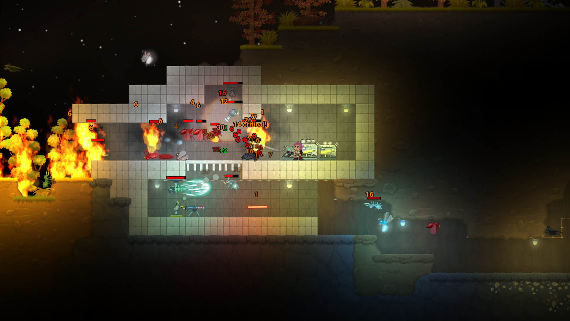 • Процедурная генерация мира: Общее местонахождение зон, ключевых для прогресса игры, фиксировано. Но конкретное расположение поверхности, пещер, ископаемых и т.д., является уникальным при каждом прохождении.