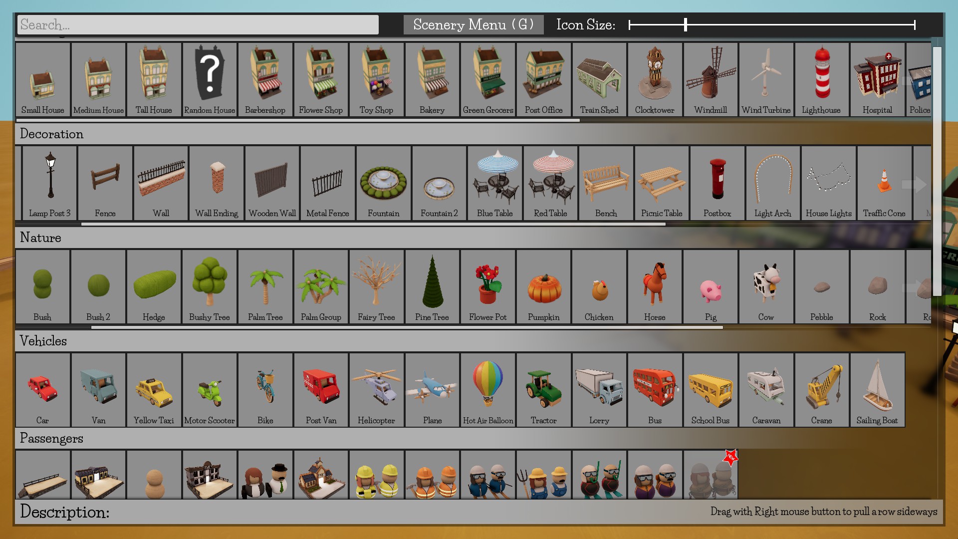 Игровой же процесс тут в целом можно условно поделить на несколько частей. Первая и самая важная заключается в строительстве железной дороги. Вы будете иметь в своем распоряжении огромное количество разнообразных элементов, с помощью которых сможете построить «деревянную» железную дорогу – звучит абсурдно, но на самом деле так и есть. Вторая же часть, это создание окружающего мира. Карта будет переполнена ландшафтными элементами, пассажирами, разбросанными по разным уголкам здешнего мира, реками и горами, и многим другим, и вы должны будете заполнить ее еще и городами, железнодорожными станциями, остановками, дорогами, машинами и всем остальным. ну а когда все будет готово, вы сможете перейти к третьему этапу геймплея. На этом этапе вы уже сможете сесть в кабину деревянного поезда и отправиться в путешествие по созданному вами же миру. Вы должны будете останавливаться на станциях, собирать пассажиров, развозить их по другим станциям, и просто кататься по железной дороге.