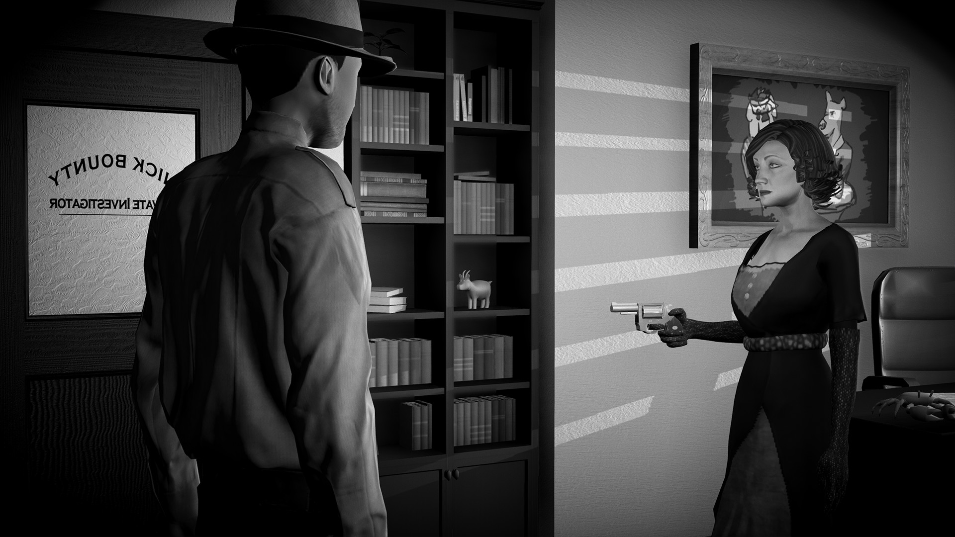 Ну а первым делом стоило бы сказать об атмосфере игры. В Nick Bounty and the Dame with the Blue Chewed Shoe вас ждет действительно крутая атмосфера. Интригующая сюжетная линия, море загадок и головоломок, продуманные диалоги с разными персонажами, из которых можно почерпнуть много полезной информации, нуарный стиль оформления локаций – все это создает просто непередаваемую атмосферу.