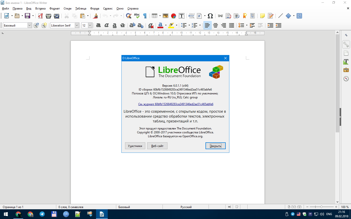 Не требуетсяОписание: LibreOffice — мощный офисный пакет, полностью совместимый с 32/64-битными системами. Переведён более чем на 30 языков мира. Программы LibreOffice — это бесплатный набор программ, сходный по функционалу с пакетом Microsoft Office: Writer – текстовый процессор; Calc – электронные таблицы; Impress – создание и просмотр мультимедийных презентаций; Draw – редактор векторной графики; Math – редактор математических формул. Одно из крайне положительных качеств - возможность работы всех этих приложений с соответствующими документами форматов MS Office.