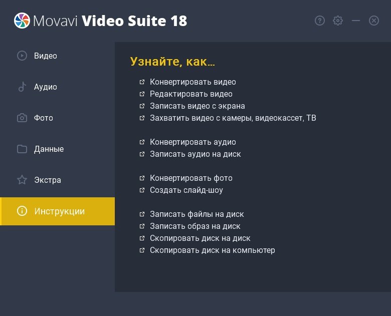 Не требуетсяMovavi Video Suite – это пакет программ на русском языке, который поможет вам без труда смонтировать отличный фильм, музыкальный клип или слайд-шоу, даже если вы совсем новичок в создании видеороликов. Накладывайте музыку, применяйте визуальные эффекты, добавляйте титры и стильные переходы – обрабатывайте видео на свой вкус! Также в Movavi Video Suite входит набор полезных приложений на все случаи жизни: мощный видеоконвертер с поддержкой 180+ форматов, удобное приложение для записи дисков, утилита для оцифровки видеокассет и многое другое.