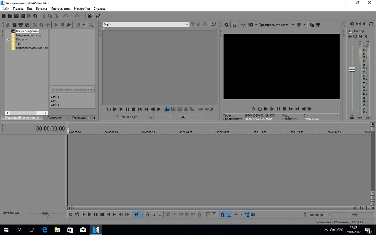 Не требуетсяSony Vegas Pro 14 полностью раскрывает творческую задумку пользователя и потенциал изначального видеоматериала. Благодаря ей вы можете одновременно взаимодействовать сразу с большим количеством открытых проектов и смешивать в одной дорожке исходники разных форматов, не проводя их рендеринг или конвертацию, что не может не радовать. Даже несмотря на внушительное число профессиональных инструментов для редактирования видео, логичный и простой интерфейс позволит даже неопытным пользователям довольно быстро освоиться с функционалом программы.