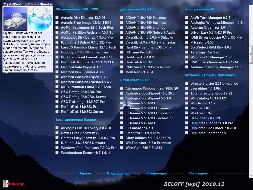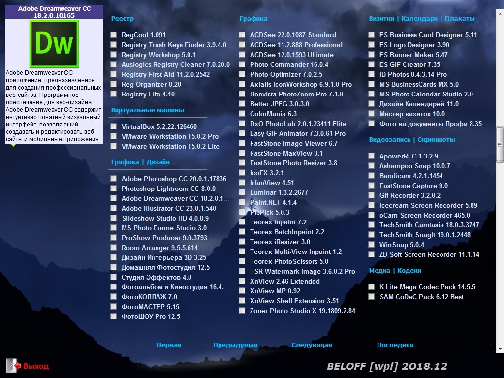 Не требуетсяWPI 2020 – это, на самом деле, огромный архив, в котором есть огромное количество программ. Разработчики изначально собирались обеспечить любого пользователя необходимым ему набором софта. Суть заключается в том, что вы выбираете из списка программ те, которые вам нужны, и жмете кнопку их пакетной установки. Как уже было сказано раньше, основная особенность этого продукта - наличие уже подготовленных инсталляторов многих программ. Но при этом имеется огромное количество интересных фишек