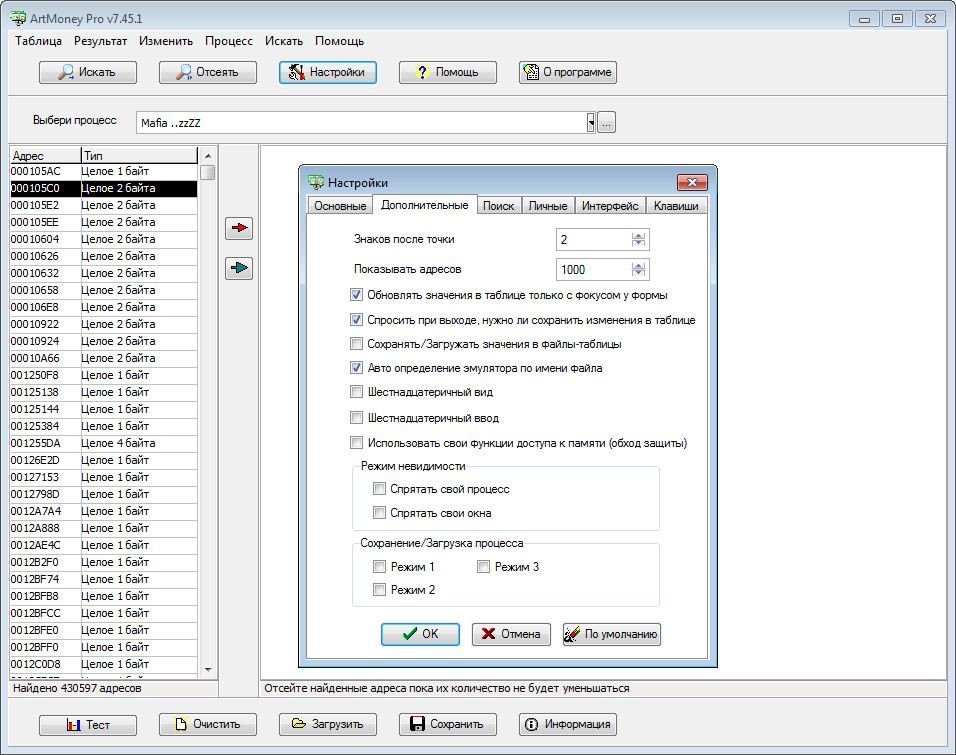 Особенности:Программа настолько интуитивная, что может обмануть систему таких игр, где нет видимых числовых значений, которые способны кодироваться в числовые файлы. Но есть минус программы, так как она не работает корректно или вообще бесполезна в играх, которые имеют возможность подключаться через всемирную паутину по той причине, что действия происходят не только на вашем ПК, но и на нескольких, в том числе на серверах разработчиков данной игры.