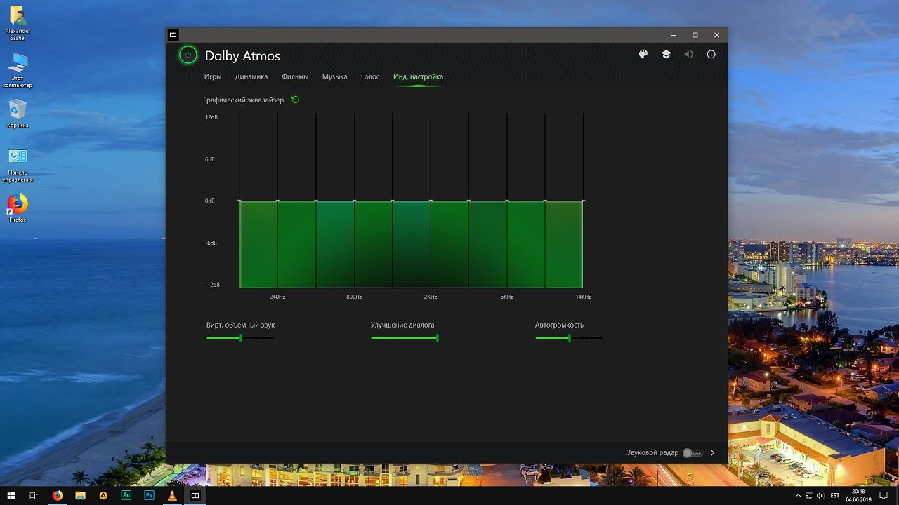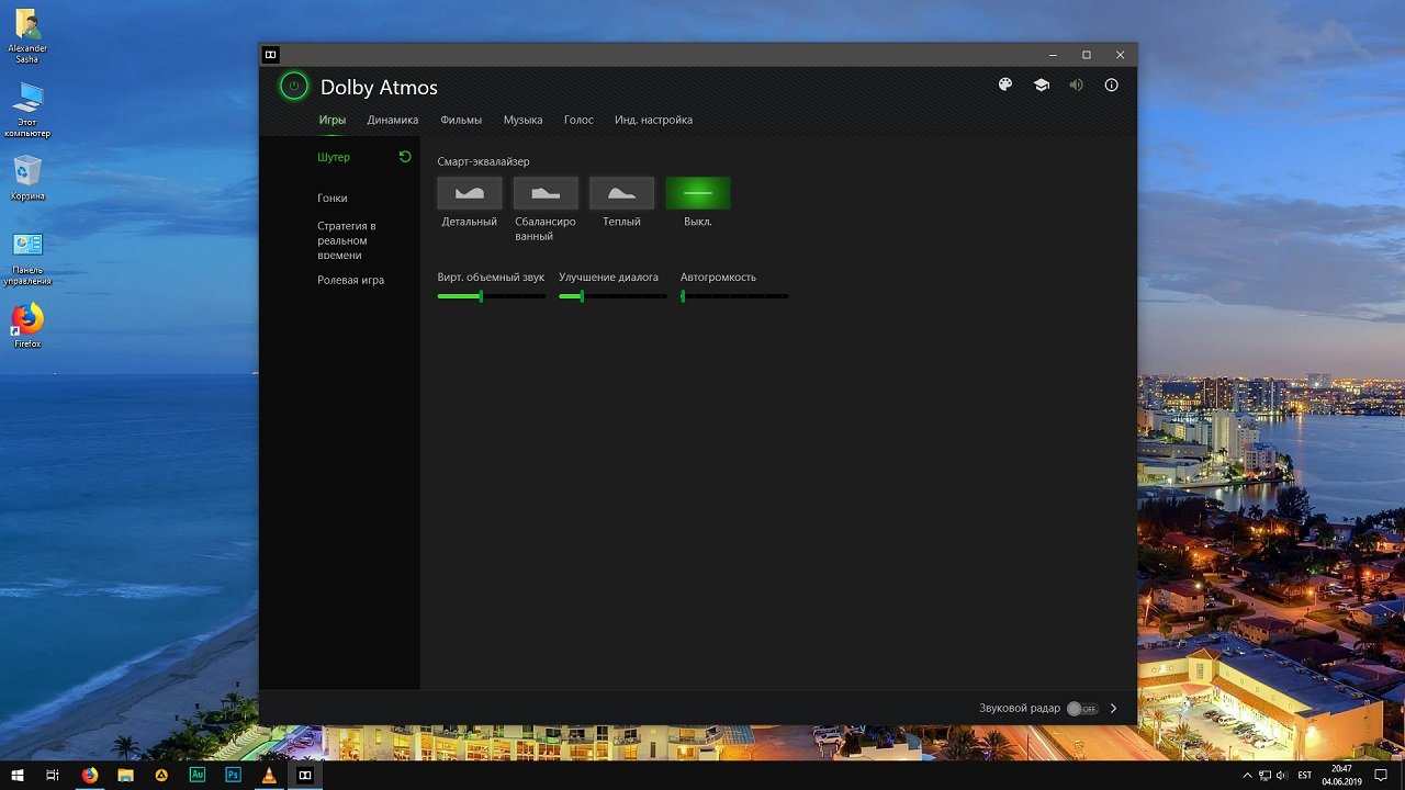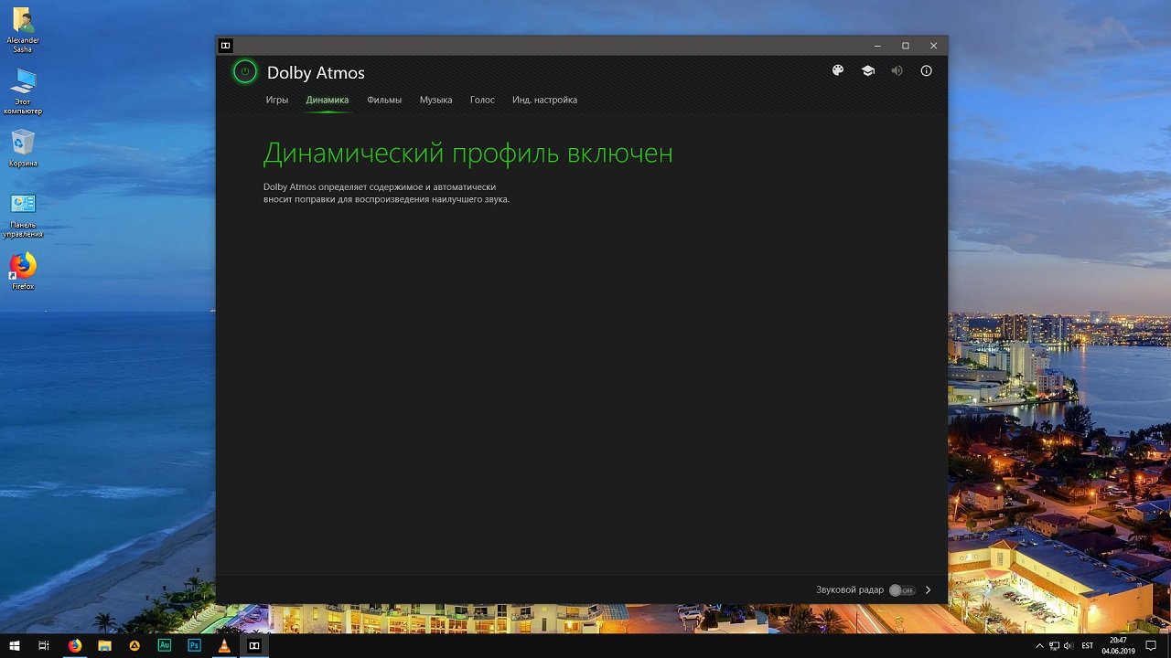 Особенности:Программа разработана для операционных систем Windows последних версий и позволяет настраивать звуковые эффекты и дорожки, получая максимально качественный пространственный звук для видео, музыки и игр. Приложение позволяет настроить ПК или консоль для поддержки Dolby Atmos, получая в итоге объемные звуковые эффекты. Пользователь может настроить собственное звуковое оборудование от USB наушников до домашнего кинотеатра, существенно улучшая качество воспроизводимых дорожек и получая эффект полного погружения.