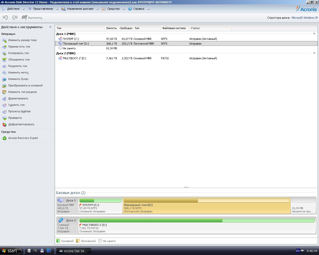 ПрисутствуетAcronis Disk Director Suite можно назвать комплексным решением, позволяющим осуществлять управление разделами или дисками на компьютере. Но это далеко не полный набор функций этой программы. С ее помощью удастся восстанавливать отдельные разделы и устанавливать на компьютер несколько операционных систем. Она будет полезна не только начинающим, но и продвинутым пользователям.Данная утилита включает в себя самые популярные функции для управления инструментами восстановления разделов, жесткими или загрузочными дисками. В ее состав входят: менеджер разделов, менеджер загрузки, редактор жесткого диска и инструмент, позволяющий восстановить информацию. С помощью такой программы можно копировать, разделять, объединять друг с другом различные разделы или создавать загрузочные конфигурации без страха потерять персональные данные.