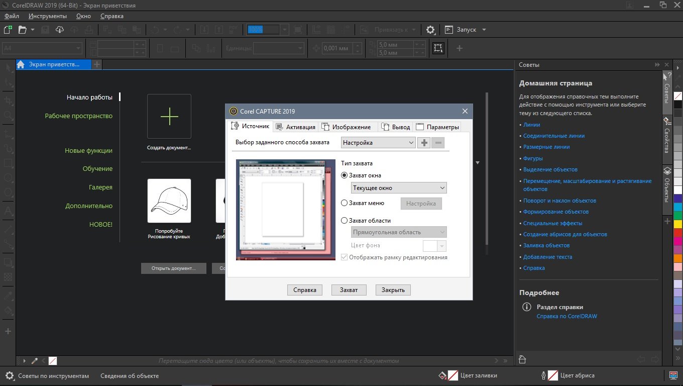 CAPTURE 2019 — позволяет произвести действие, конторе называется «захват экрана».