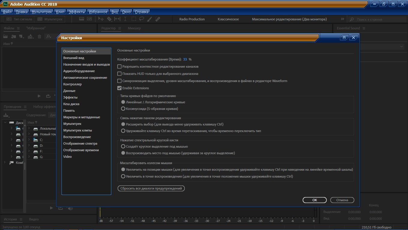 Не требуетсяAdobe Audition CC 2018 – программа потрясающего масштаба, в плане работы с аудио, а именно создания музыки с нуля, а также её редактирования. Если вы специалист в данной области, то тогда такая программа это именно то, что вам нужно, так как она работает как незаменимый друг, работающий достаточно неплохо из-за обильного количества инструментов, которые позволяют работать программе ещё лучше.Программа имеет большое количество инструментов для блестящего сведение любого из ваших треков.Собственно, чтобы делать разные по динамике песни, следует обзавестись нормальной программой, которая будет профессиональной, или же иметь функционал профессиональной программы, а для этого вначале нужно найти её, а найти что-либо качественное в наше время не так-то просто.Мы говорим о программе, которая называется Adobe Audition CC 2018, от известного в наше время RePack разработчика программ и игр KpoJiuk.