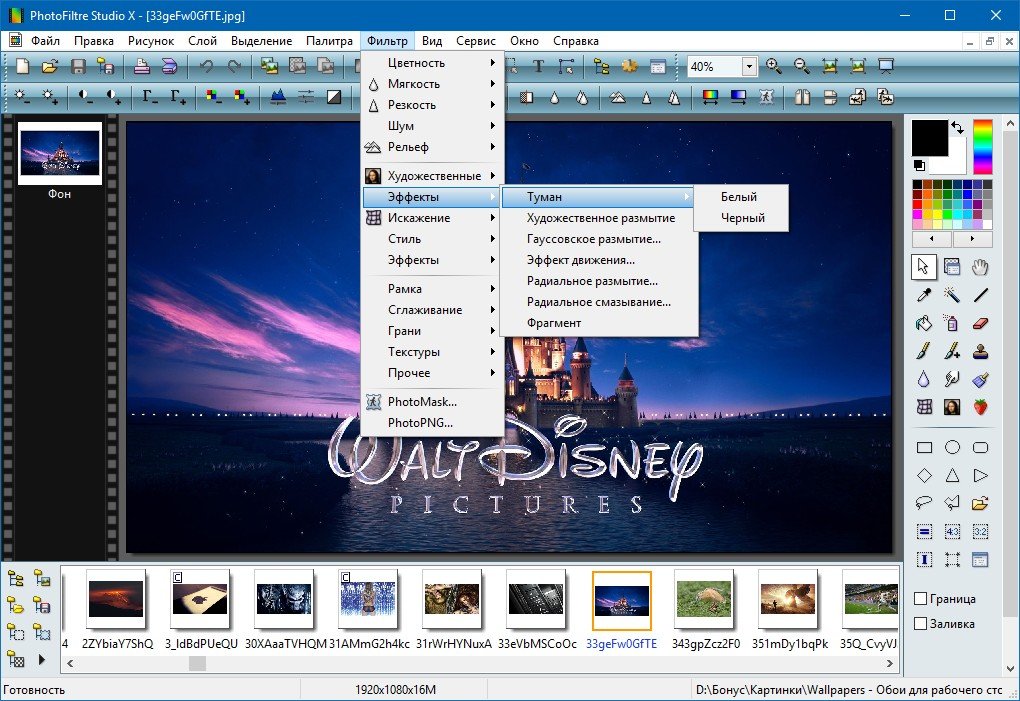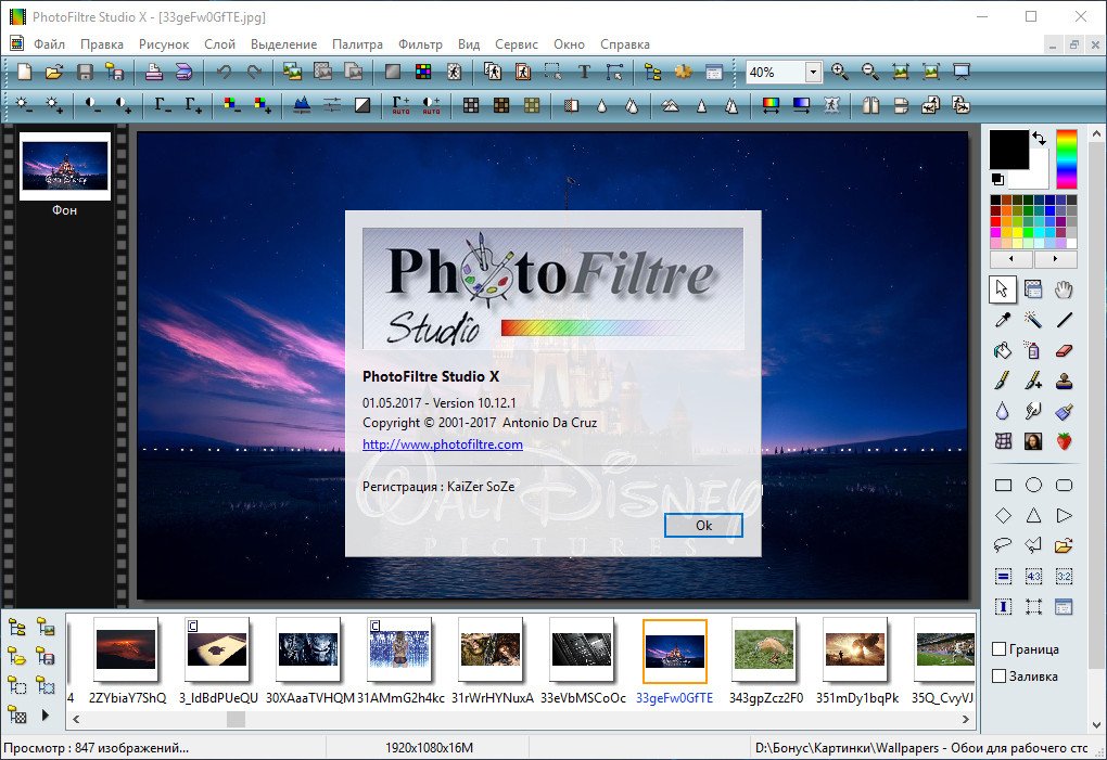 Лечение: в комплекте (готовый серийник)PhotoFiltre Studio программа с помощью которой Вы сможете довольно просто редактировать графические изображения, плюс получите большое количество дополнительных возможностей, возможно разработка вам понравится. Сразу хочется отметить вот какой момент, редактор на самом деле довольно удобен в использовании, Вы получите все необходимые инструменты для совершения разного рода операций с вашими изображениями.PhotoFiltre Studio позволит вам изменять параметры яркости картинки, контрастности и естественно насыщенности, имеется поддержка гамма коррекции. Дополнительно пользователь получит что-то около сотни встроенных фильтров, все они направлены на обработку вашего снимка. Например можно применять эффект акварели, пазла и прочих других, думаю сами узнаете более подробно об этом при непосредственной работе. PhotoFiltre Studio выносит в отдельную панель те фильтры, которыми вы чаще всего пользуетесь, что конечно удобно, ведь не надо каждый раз искать нужный среди большого количества остальных. Конечно программа позволяет пользоваться солями, есть расширенные функции отвечающие за выделения нужной области.