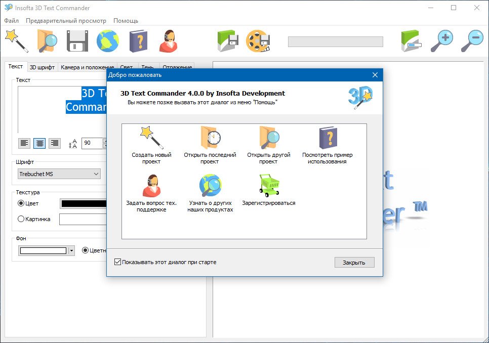 • Возможность предварительно просматривать свой 3D текст в реальном времени в окошке предпросмотра; осматривайте текст со всех сторон просто поворачивая его мышкой.
