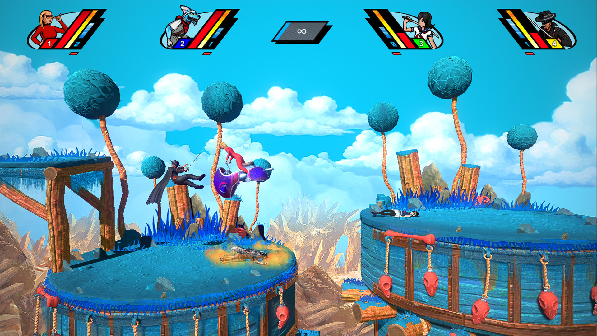 Еще одна особенность Go All Out! заключается в аренах. Во-первых, каждая арена по-своему уникальна и красива. Где-то вам придется драться в городской местности, где-то на фоне апокалиптической атмосферы, а где-то придется и вовсе побывать в таком месте, в котором хочется просто отдыхать, а не драться. Во-вторых, арены интерактивны и порою очень опасны. Например, на некоторых аренах и вовсе могут быть пропасти, в которые вы если не сами будете падать, так противники будут вас скидывать. Ну а в-третьих, на аренах нередко появляются предметы, которые можно использовать против врага.