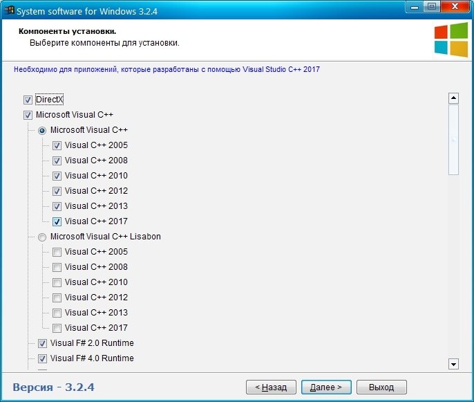Microsoft Visual С++-Распространяемые пакеты Visual C++ устанавливают компоненты среды выполнения, необходимые для выполнения приложений C++, которые разработаны с помощью Visual Studio С++.