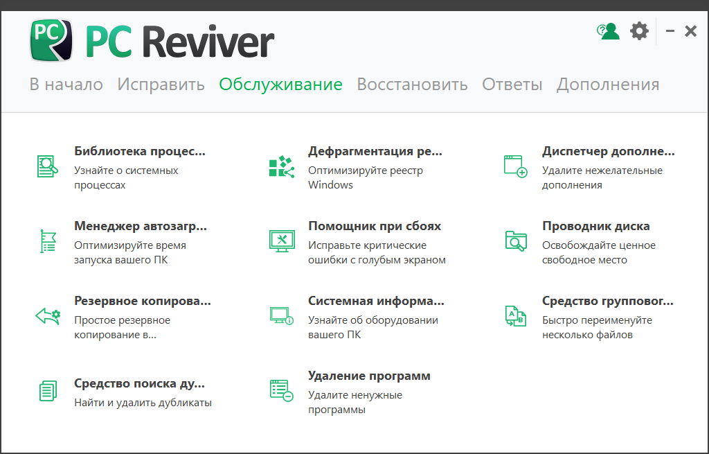 Особенности:Улучшить и ОптимизироватьPC Reviver включает в себя передовые диагностические инструменты, которые будут выполнять всестороннюю и полную проверку для нахождения проблем с вашим ПК. PC Reviver благополучно исправит эти проблемы и выполнит другую оптимизацию для восстановления оптимальной производительности и стабильности вашего ПК.