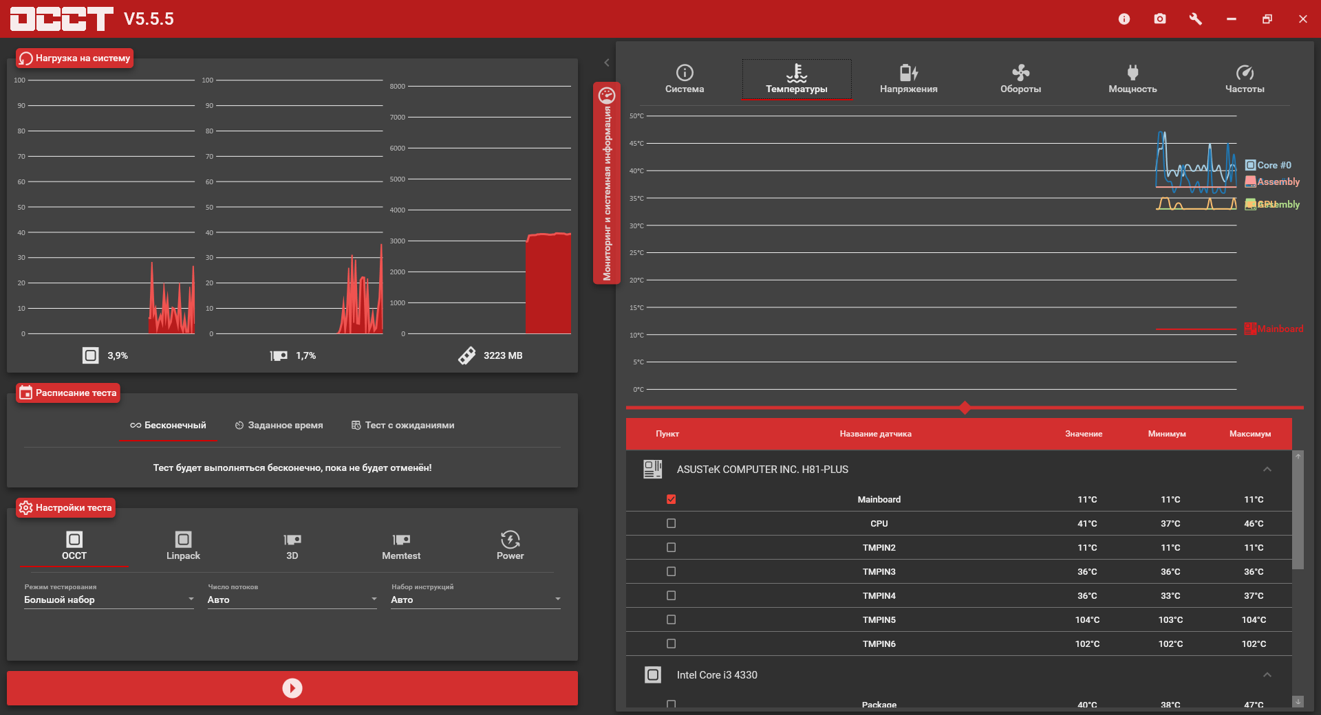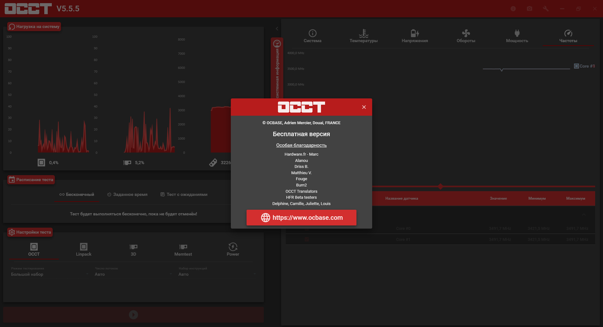 Не требуетсяОписание: Программа для проведения синтетических тестов на стабильность работы компьютера. OCCT Perestroika позволяет проводить парное тестирование: процессор - память и отдельную проверку стабильной работы центрального процессора и оперативной памяти. Результаты проверки выводятся в виде информативных графиков. Программа поддерживает работу с современными многоядерными процессорами и совместима с последними версиями Windows. В ходе тестов утилита выводит рабочие параметры компонентов системы, используя сторонние программы мониторинга (SpeedFan , AIDA64 и т.п.)