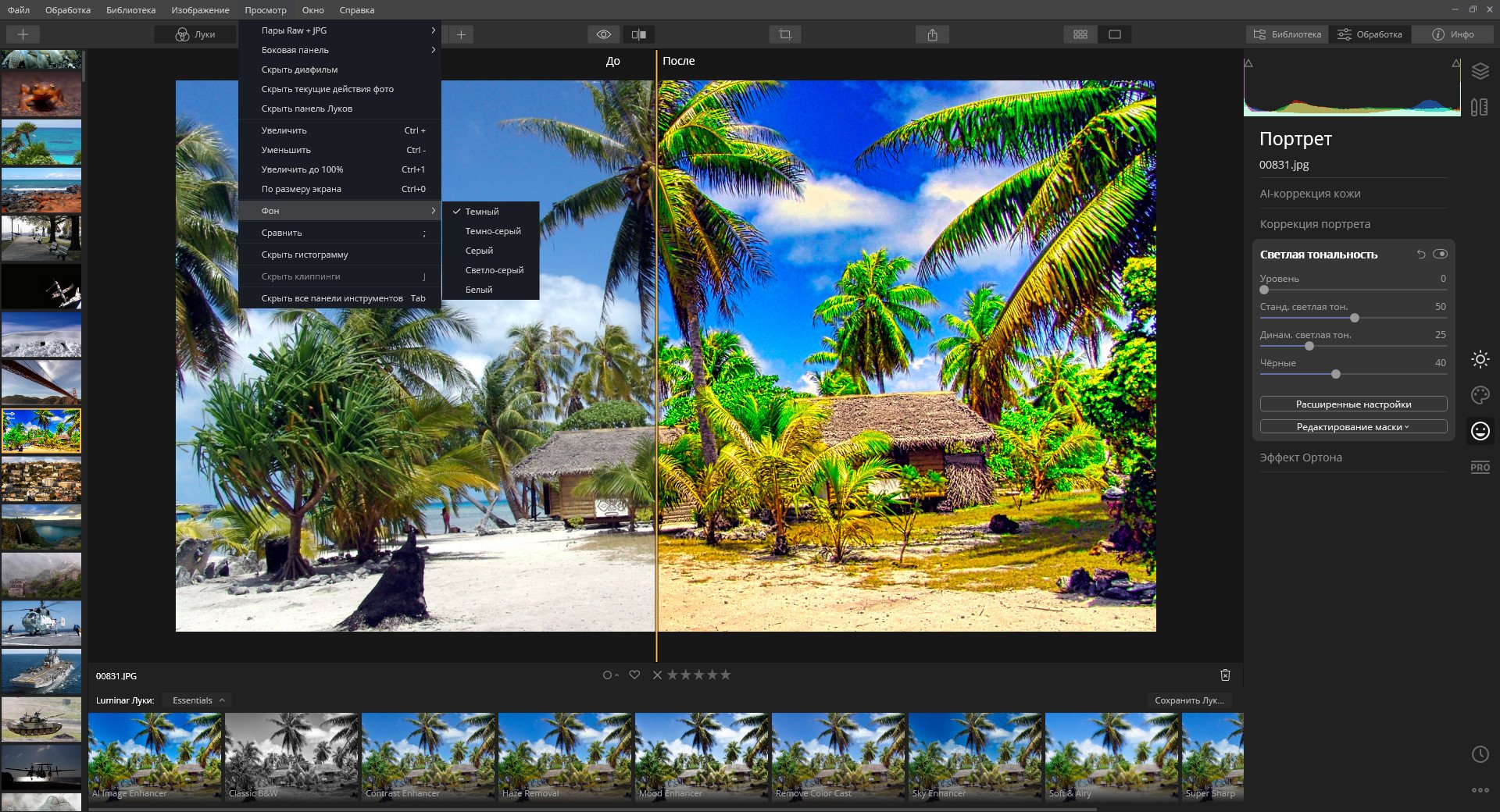 Особенности:В программе появились фильтры на базе искусственного интеллекта, которые позволяют добиться эффекта, дословно, «классной фотки«. Кроме шумоподавления в реальном времени эти фильтры очень просты в работе. Но если их мало, в программе есть еще около 100 пресетов с 40 дополнительными фильтрами.