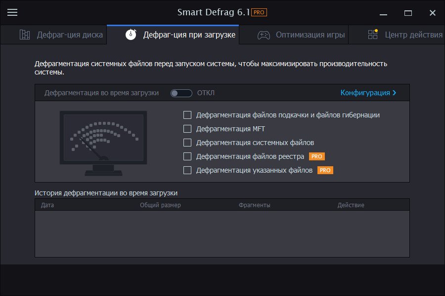 Дефрагментация при загрузке системы:
