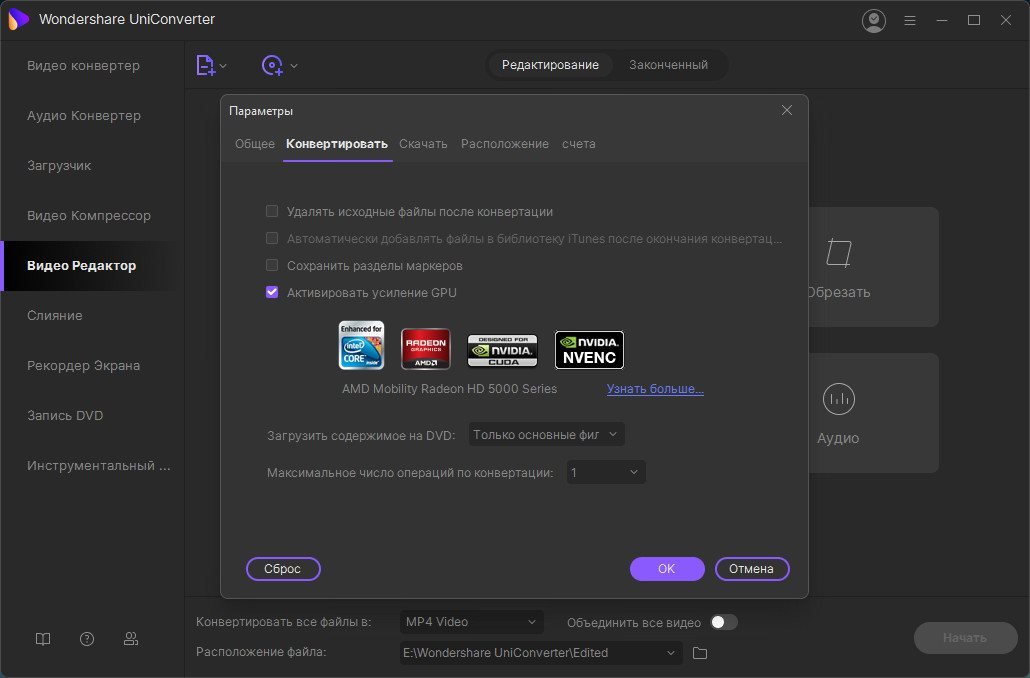 Не требуется (инсталлятор уже пролечен). Тип лекарства: (патч)Wondershare UniConverter - простой в использовании видеоконвертер, с помощью которого вы легко можете конвертировать, редактировать, увеличивать, скачивать, записывать на диск, организовывать, захватывать видеосигнал и просматривать в более чем 159 форматах. Наслаждайтесь последним дополнением к VCU в новом видеоформате 4K! Ощутите с помощью 4K лучшее и непревзойдённое на сегодняшний день качество изображения! Конвертируйте видео в 1000 форматов с 30-кратной скоростью без потери качества. Быстрая конвертация, высокое качество работы и другие дополнительные функции делают данный видеоконвертер совершенным. Wondershare UniConverter также предлагает полный набор оптимизированных видео инструментов, которые вам непременно пригодятся. Программа имеет простой в использовании и приятный интерфейс.