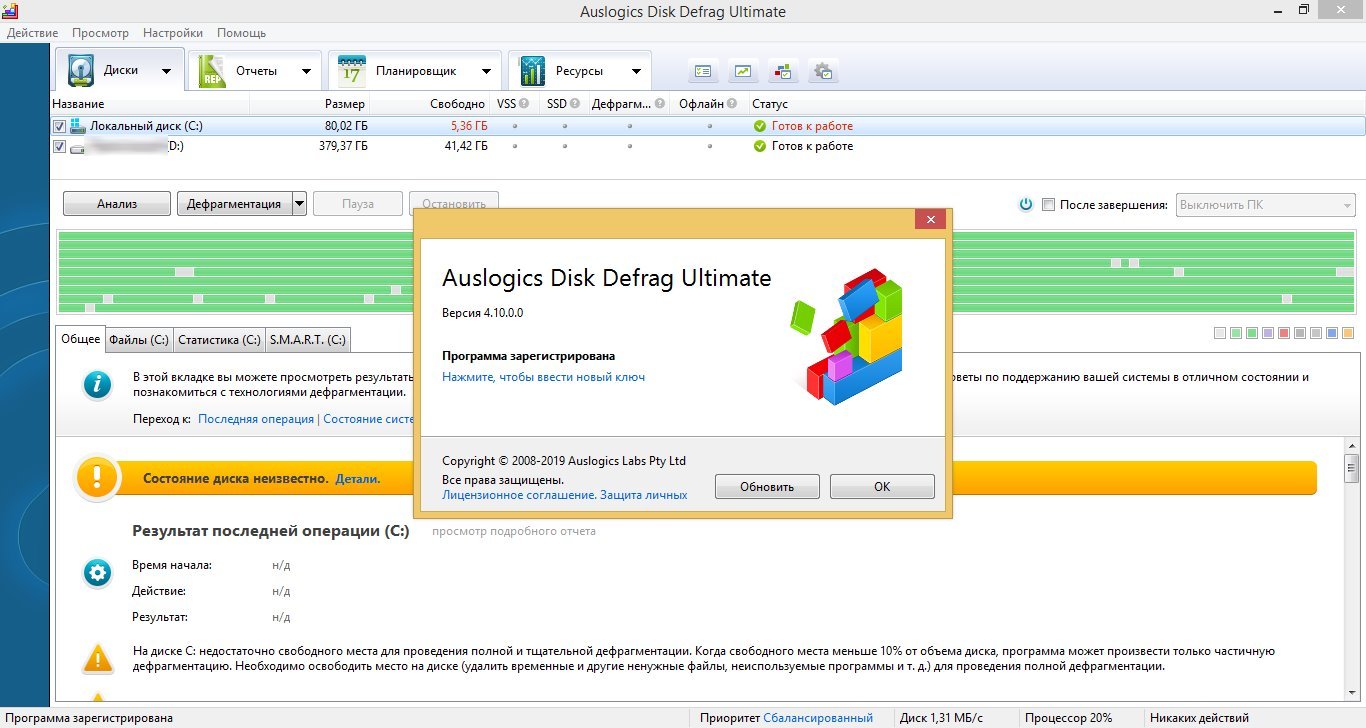 Auslogics Disk Defrag UltimateГод выпуска: 2020