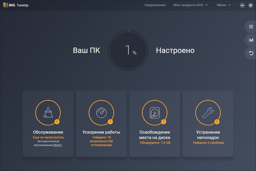 В комплектеОписание: Используя AVG PC Tuneup, ваша система всегда будет в рабочем состоянии, можете забыть про беспорядки и прочие неудобства, которые зачастую мешают нормально пользоваться компьютером. Дополнительно программа предложит вам инструменты для изменения оформления вашей Windows системы. Сразу стоит отметить достаточно удобный интерфейс AVG PC Tuneup, Русская поддержка присутствует, все инструменты разделены на категории, ими очень удобно пользоваться, после первого запуска можно посмотреть общее состояние компьютера, а потом уже принять решение, надо оптимизировать или нет.