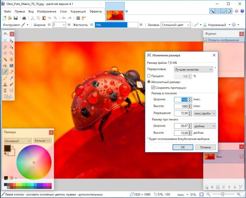 Для того, чтобы исправить допущенные ошибки в момент редактирования фото или рисунка есть функция истории. Каждое действие, которое выполнит человек, может быть удалено, но спустя немного времени возобновлено.