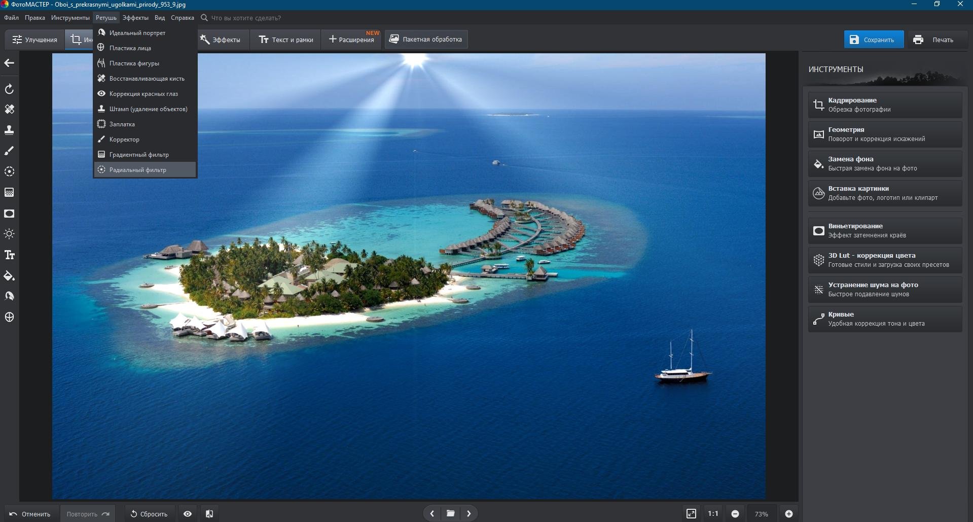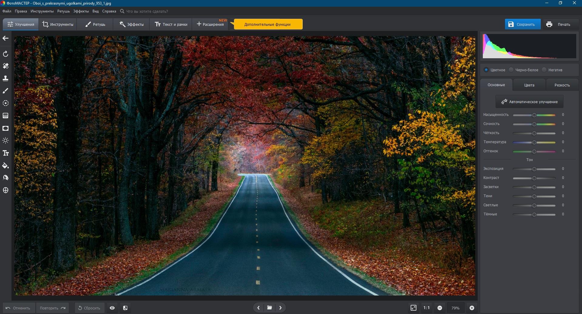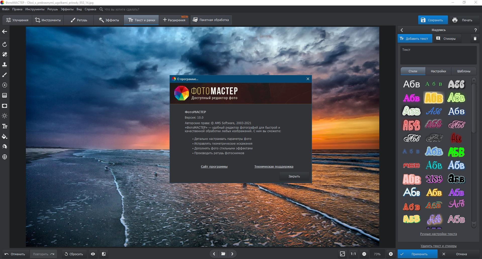 В комплектеОписание: Создавайте идеальные фотографии всего лишь за пару минут, даже если не владеете инструментами ретуши. Улучшайте изображение при помощи готовых эффектов, меняйте параметры цвета, резкости и контраст снимка, обрезайте, поворачивайте, отражайте изображения и удаляйте лишние объекты. Также ФотоМАСТЕР порадует вас штампом, кистью, резкостью и размытием. Создавайте идеально ровную кожу, делайте глаза и губы более выразительными. Вы даже можете менять цвет глаз, один клик, и вместо ваших зеленых глаз – небесно-голубые. Пасмурное небо также не проблема, по крайней мере, на фото. Благодаря художественным фильтрам сделайте пейзаж более солнечным или, наоборот, добавьте каплю «туманности». Корректируйте параметры каждого оттенка и создавайте новое настроение для фотоснимка. Меняйте время суток, цвета, насыщенность, а также регулируйте силу тонирования. В общем возможностей очень много, со всеми ими вы ознакомитесь в самой программе!