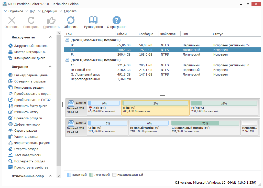 Копировать раздел для переноса данных, конвертировать между логическим и основным разделами, конвертировать NTFS в FAT32.