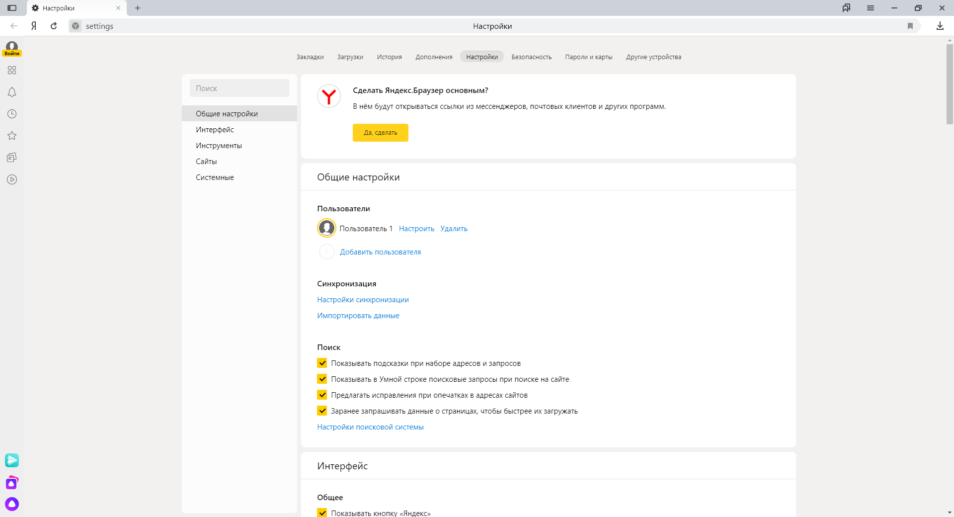 • "Облачные" возможности: поиск с подсказками, проверка орфографии, переводчик, геолокация и другие сервисы Яндекса.