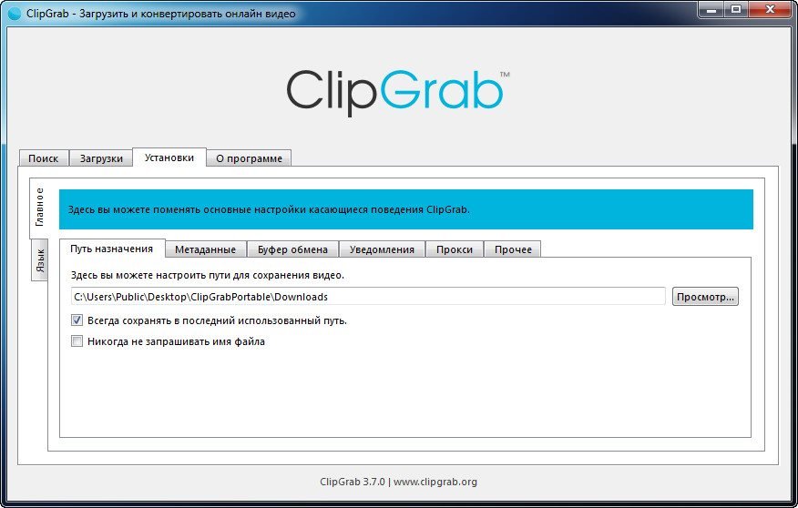 Настройки программы ClipGrab: