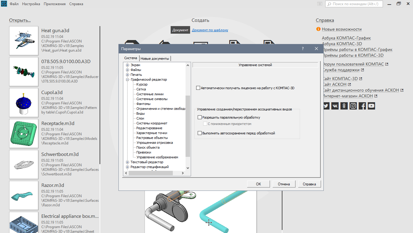 По умолчанию КОМПАС-3D поддерживает экспорт / импорт наиболее популярных форматов моделей, за счёт чего обеспечивается интеграция с различными CAD / CAM / CAE пакетами. Базовая функциональность продукта легко расширяется за счёт различных приложений, дополняющих функционал КОМПАС-3D эффективным инструментарием для решения специализированных инженерных задач. Например, приложения для проектирования трубопроводов, металлоконструкций, различных деталей машин позволяют большую часть действий выполнять автоматически, сокращая общее время разработки проекта в несколько раз. Модульность системы позволяет пользователю самому определить набор необходимых ему приложений, которые обеспечивают только востребованную функциональность.