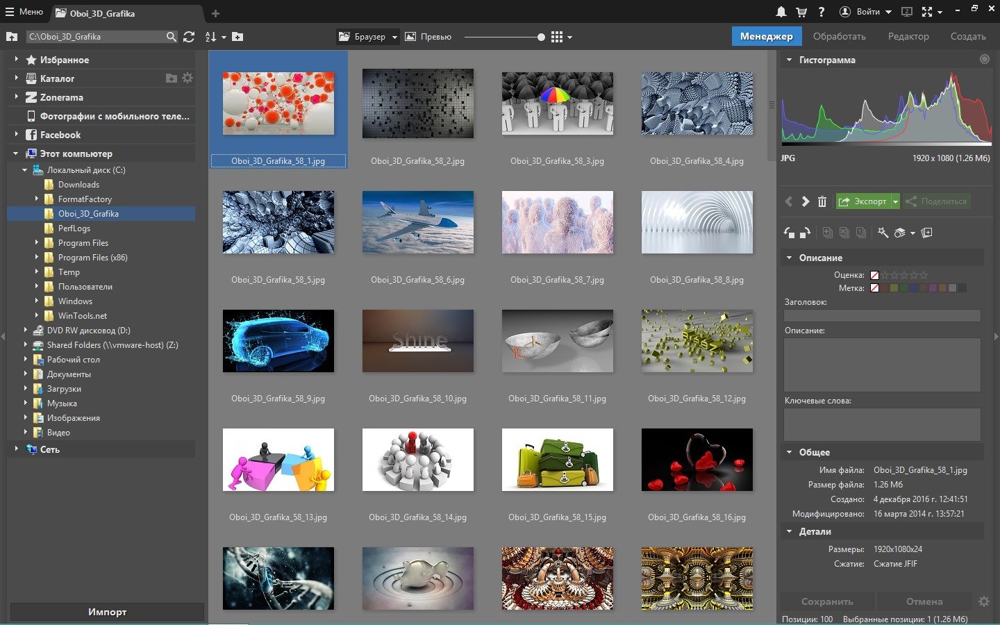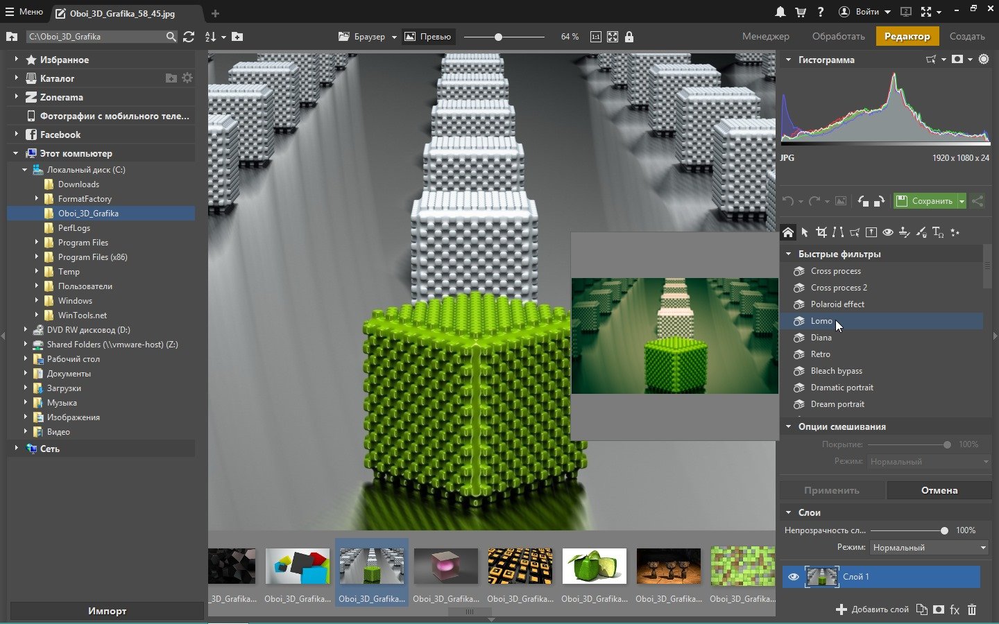 Особенности:Zoner Photo Studio - это инструмент, который безопасно проведет пользователя через все этапы процесса управления и обработки цифровой фотографии: получение, правка, архивация и публикация. Универсальное решение «все в одном» предоставляет пользователю исключительный комфорт во время работы без необходимости постоянно переходить из одной программы в другую.
