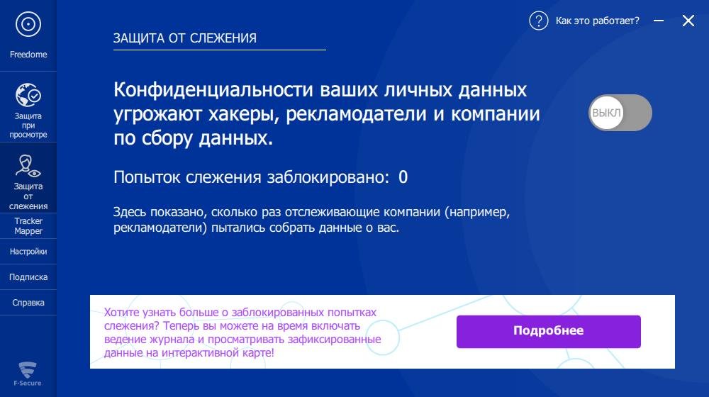 Особенности:F-Secure Freedome - мощный VPN-клиент для обеспечения Вашей полной анонимности и безопасности в Интернете.