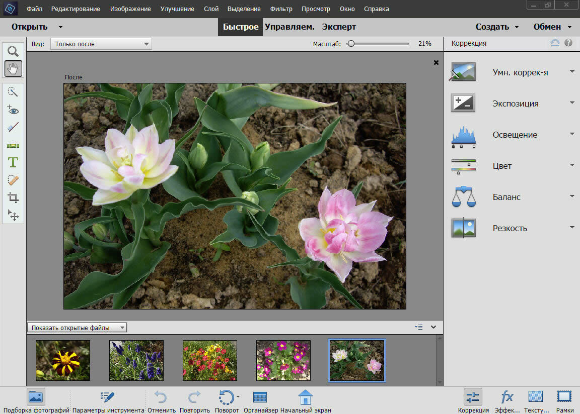 ВылеченоAdobe Photoshop Elements позволяет редактировать изображения с помощью многофункциональных удобных в использовании инструментов.Он помогает сделать из обычных фотографий настоящие шедевры, которыми вы никогда не перестанете восхищаться.Показывайте лучшие фотографии с помощью автоматически создаваемых коллажей и улучшайте их с помощью функций интеллектуального редактирования.С легкостью систематизируйте фотографии и показывайте их родным и друзьям удобными способами.С Adobe Photoshop Elements инструменты для создания прекрасных фотоэффектов, забавных слайд-шоу и творческих коллажей всегда будут под рукой.Благодаря автоматизированным функциям редактирования в Adobe Photoshop Elements и пошаговым инструкциям вы сможете создавать потрясающие фотографии. Чтобы создать первый проект, ознакомьтесь с вдохновляющими идеями, советами и руководствами на главном экране.