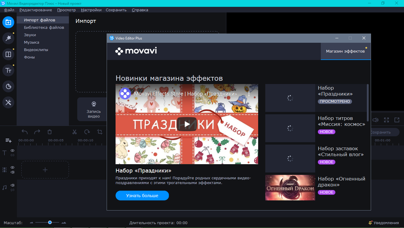 Не требуется (инсталлятор уже пролечен)Movavi Video Editor, это один из лучших видео-редакторов на рынке мультимедийных продуктов, ориентированных на массового пользователя, профессиональных требований не требуется, вам досточно владеть опытом работы с простыми мультимедийными программами. Movavi Video Editor дает возможность юзеру заниматься редактированием своих видео-файлов на хорошем базовом уровне. Пользователь сможет; вырезать, склеить, добавить не обычные визуальные видео-эффекты, подписать свое видео различными шрифтами, импортировать и экспортировать готовые видео-файлы в различные форматы. Возмоно так же, воспроизводить файлы DVD и 3D видео, осуществлять запись видео и аудио данных.
