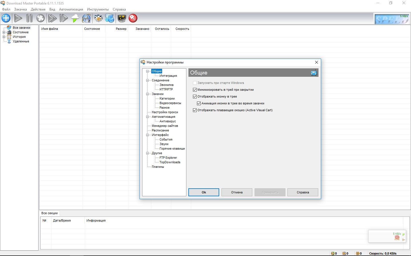 История закачек;