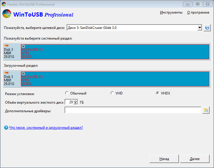 Не требуется (инсталлятор уже пролечен)WinToUSB - позволяет устанавливать и запускать операционную систему Windows с USB-HDD или USB-Flash, используя образ ISO или CD/DVD диск в качестве источника установки. WinToUSB также поддерживает создание загрузочного WinPE USB, он может помочь вам перенести содержимое WinPE на диск USB и сделать накопитель загрузочным.