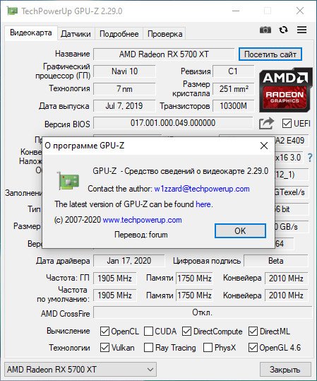 Не требуетсяGPU-Z - бесплатная программа от TechPowerUp для отображения технической информации о видеоадаптере (видеоконтроллере/видеокарте/видеомодуле), работающая под ОС Microsoft Windows. Программа отображает технические характеристики графического процессора и его видеопамяти, то есть определяет производителя и название видеоадаптера, тип видеопроцессора и его характеристики, размер и тип видеопамяти, дату и версию видеобиос, дату и версию видеодрайвера, а также показывает поддерживаемые видеопроцессором графические технологии и стандарты. Программа GPU-Z может заодно дополнительно определить температуру и частоту ядра, частоту видеопамяти и скорость вращения кулера и провести онлайн сравнение устройства с другими аналогичными продуктами.