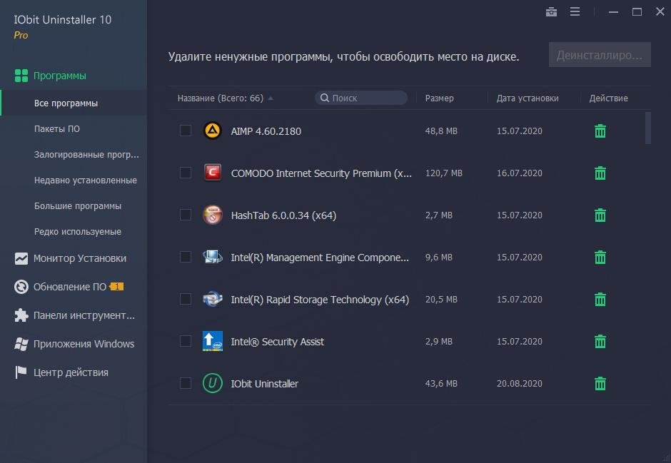 Удаление без остатков (файлы, папки, записи реестра) с функциями "Мощное сканирование" и "Принудительное удаление"