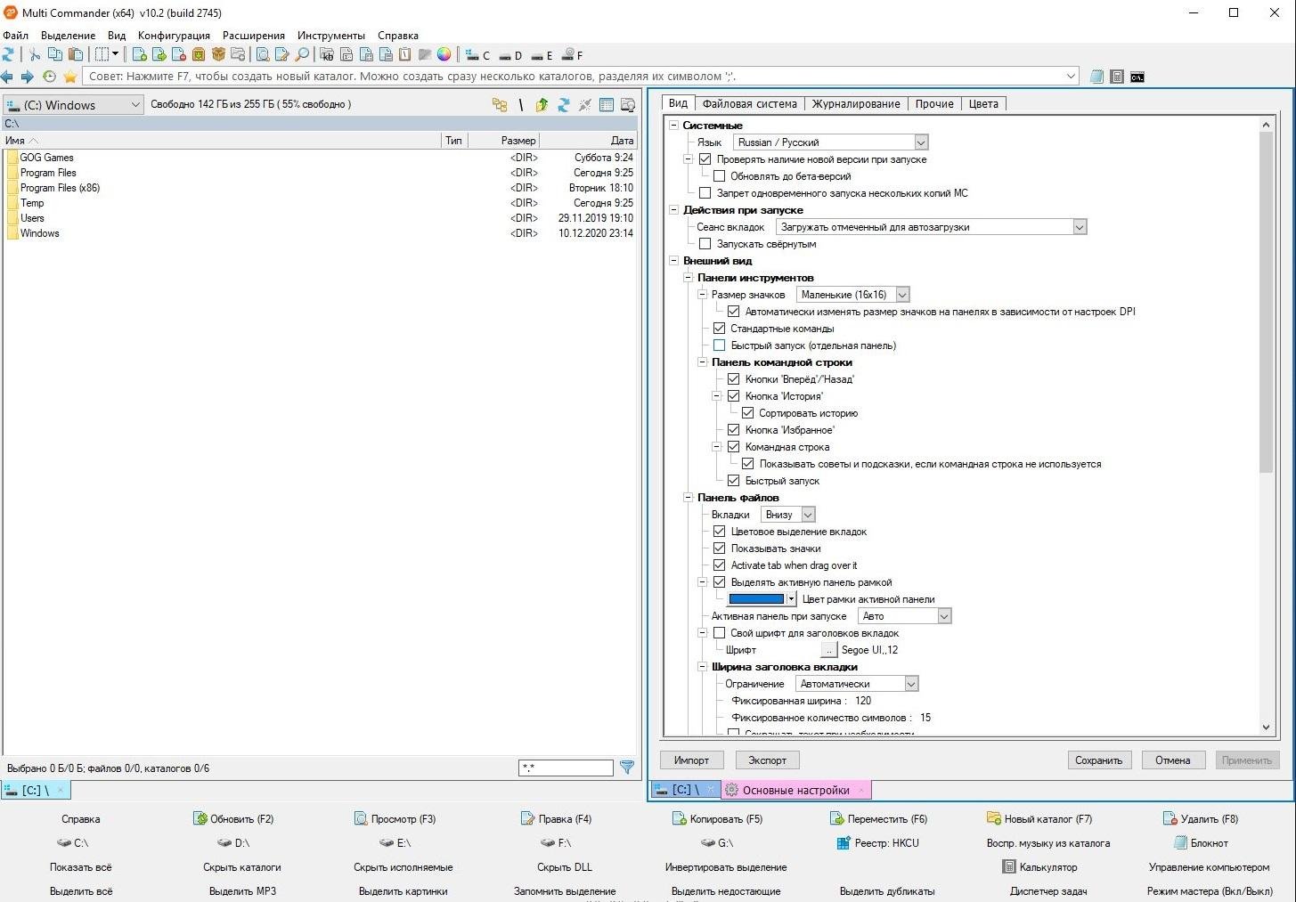 Не требуетсяMulti Commander - мощный мультиоконный менеджер файлов, являющийся отличной альтернативой стандартному проводнику Windows. При работе с файлами используется удобный двухпанельный вид, что обеспечивает простоту и доступность эффективного и быстрого управления файлами в повседневной деятельности.