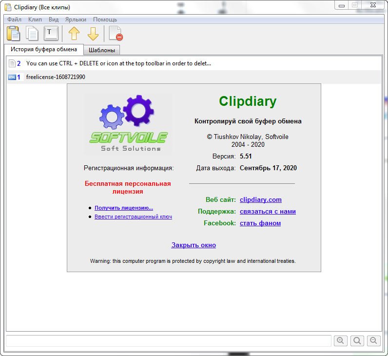 Не требуется для некоммерческого использованияОписание: Во время работы за компьютером вы наверняка постоянно что-то копируете в буфер обмена. Правда? Но он может хранить данные очень недолго, стоит вам выключить компьютер или просто скопировать другой текст и все данные потеряны. Обычно этого вполне достаточно, но не возникала ли у вас необходимость в тексте, который вы скопировали 30 минут назад или, может, час. Может быть, у вас повис компьютер и данные в программе не сохранились? Может, вы скопировали интересную информацию с веб страницы, но вас отвлекли и вы "забыли" вставить его в нужное место? А может быть, вам просто интересно посмотреть и вспомнить, что вы делали за компьютером месяц назад или, может, даже год? Ситуаций когда хотелось бы вернуться к предыдущему содержимому буфера обмена множество, и мы предлагаем вам решение этой проблемы.