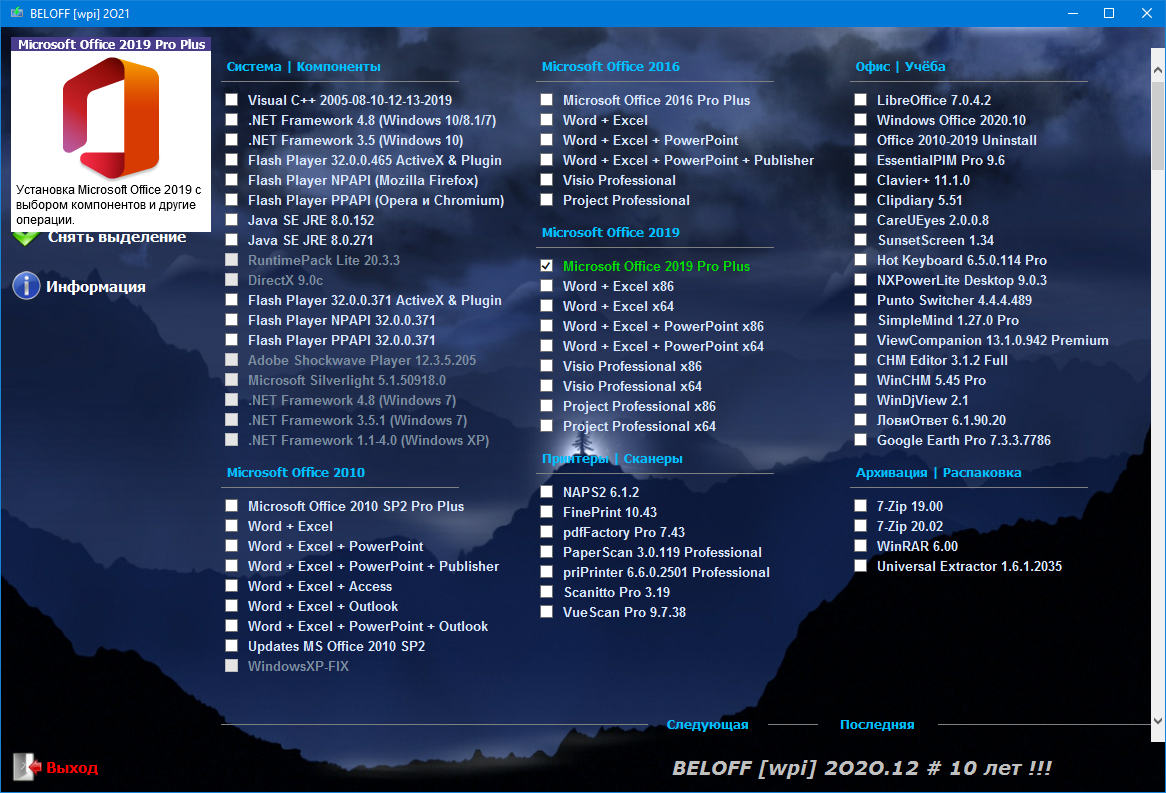 Не требуетсяОписание: Универсальный Сборник Лучших Программ Рунета, распределённых по категориям, с Автоматической Установкой в Операционные Системы Windows. В Сборник дополнительно добавлены Портативные Программы, которые можно будет легко использовать как с Диска и Виртуального Привода, так и с USB-накопителей, включая установку MInstAll и WPI, а также автоматическую установку драйверов с помощью Snappy Driver Installer и DriverPack Solution. Для большего удобства использования Сборника добавлена Мультизагрузка.
